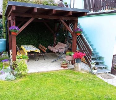 Providing free bikes, Ubytovanie Dagmar features accommodations in Svätý Jur. This apartment offers free private parking, a shared kitchen, and free Wifi. The property provides a children's playground and outdoor furniture. Offering a terrace with mountain views, this apartment also has a satellite flat-screen TV, a well-equipped kitchen with an oven, a microwave, and a toaster, as well as 1 bathroom with a bidet and slippers. The apartment offers bed linen, towels, and daily room service. Continental and American breakfast options with fresh pastries, pancakes, and fruit are available. Guests can take advantage of the property's barbecue facilities and save a trip to the supermarket by requesting grocery delivery. Skiing, cycling, and hiking are possible within the area, and the apartment offers ski storage space. Strbske Pleso is 10 miles from Ubytovanie Dagmar, while Treetop Walk is 19 miles away. Poprad-Tatry Airport is 8.1 miles from the property.