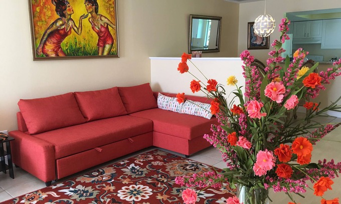 House has original European artwork throughout. It is welcoming, clean, unique and elegant. There are 2 bedrooms and in the living room there is a comfortable sofa bed that becomes a queen size bed.