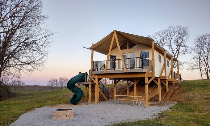 Relax in this cozy glamping tent just 8 minutes from the Ark Encounter! Nestled in nature, Abide Glamping is perfect for couples, families, or solo travelers seeking a unique, peaceful escape.