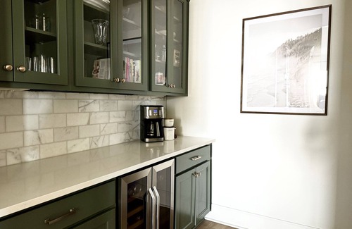 The home comes equipped with Public Goods toiletries in every bathroom along with spices, cooking oils, a coffee bar, and top of the line cooking appliances.