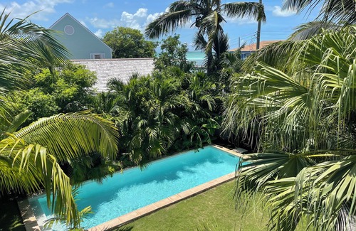 Kings Treat stands on King Street in a large walled garden with a swimming pool, one of the historic houses of Dunmore Town, Harbour Island.