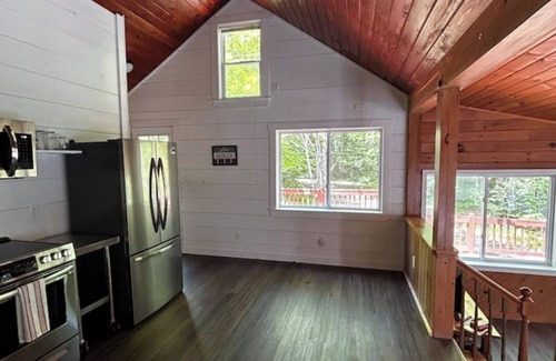 Welcome to Embden Cottage! The cottage offers a peaceful stay for up to 6 people. The updated open concept kitchen and living room has plenty of room to hang out. The living room offers a queen sofa bed. There is a large wrap around deck which provides additional living space in the summer time. Grill on the deck while taking in the waterviews. The two bedrooms are ultra private and are surrounded by greenery. It feels like you are in nature while still in the luxury of a fully equipped home. There is a spacious bathroom with tub and shower and in-unit laundry.