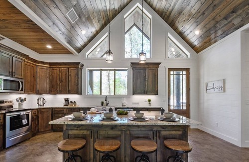 Un-Reel is the perfect cabin for 1-2 couples or a small family to enjoy Broken Bow from a convenient central location close to restaurants, attractions, the lake, and Beavers Bend State Park. Walking distance from a pond, this rustic farmhouse design boasts an infinity game table, EV car charger, corn hole, and 5 smart TVs throughout the cabin to keep you entertained.