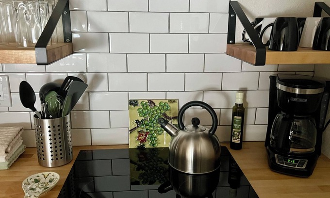 This private unit includes a cozy bedroom, a full bathroom, and a fully stocked kitchen with a stovetop, oven, dishwasher, cookware, and everything you need to prepare meals during your stay. Whether you’re here for a weekend getaway, a business trip, or a longer visit, you’ll find the space functional, inviting, and easy to settle into. A rollaway bed is also available upon request to comfortably accommodate a third guest.