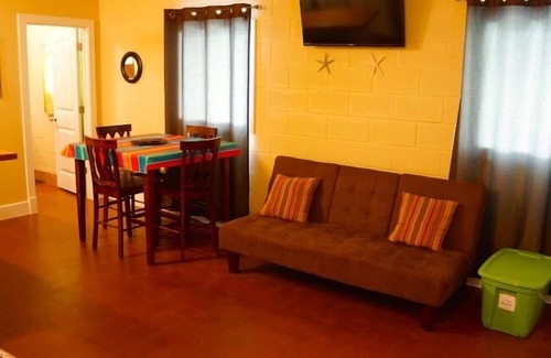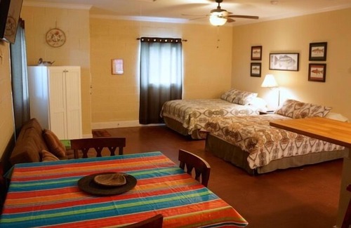 Uncle Woody's 4 is a ONE ROOM unit with 2 queen beds (it's part of a Duplex with adjoining rooms so you can rent one or both). Very nicely appointed Open Room with Couch, Table and Fully Equipped Kitchen. A place for you, your friends and your boats. Pets Welcome, Additional Nightly Pet Fees Apply--see our FAQ and Policies on Pet Friendly Units.
