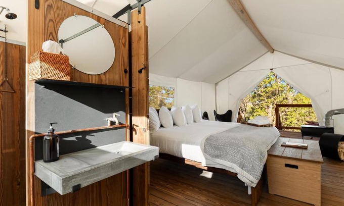 Under Canvas Bryce Canyon offers accommodations in Widtsoe, 6.7 miles from Sunrise Point and 9.1 miles from Sunset Point. The property is around 2.3 miles from Pink Cliffs Village, 7 miles from Daves Hollow Forest Service Station, and 7.1 miles from Queen Victoria. There's a restaurant serving American cuisine, and free private parking is available. At the luxury tent, all units come with a private bathroom with free toiletries. Guests at the luxury tent can enjoy an American breakfast. There is a coffee shop, and packed lunches are also available. Yoga is available at the property. Guests can also warm up near the outdoor fireplace after a day of cycling. Three Wise Men Rock Formation is 7.3 miles from Under Canvas Bryce Canyon, while Inspiration Point is 7.3 miles away. Cedar City Regional Airport is 90 miles from the property.