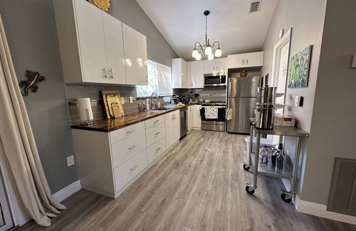 Charming vacation rental just outside central LaBelle—perfect to escape the snow. Minutes to downtown and schools. Boasts a spacious interior and expansive outdoor space, including a fenced-in backyard and Florida room with workout equipment. Ideal for indoor-outdoor living. If you do not want to go out and check out the local brewery or any other family owned restaurants in town. You have a fully stocked kitchen for you if you wanted to stay in and cook