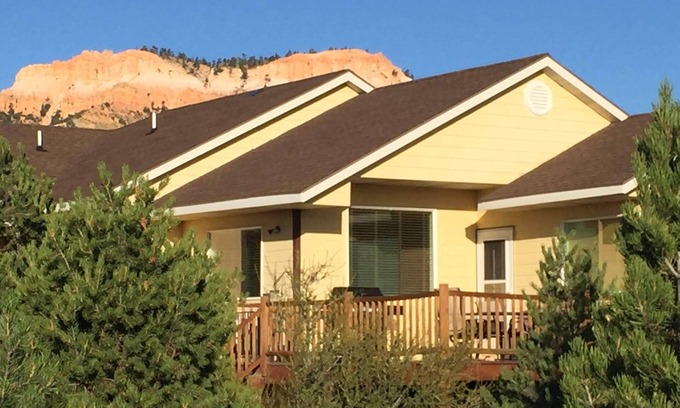 UNDER THE RIM GUEST HOUSE, which includes a bonus detached cottage, is located on a breathtaking one-acre scenic property directly "under the rim" of Bryce Canyon National Park! This is the perfect venue for those traveling as a family or group. This property sleeps up to 10 people. There are two full kitchens, four bedrooms, and three full bathrooms. So much space and all surrounded by amazing beauty!