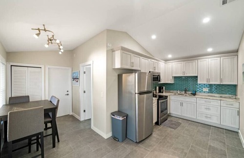 This place is the ultimate waterfront getaway. Located right on the Banana River, you will have access to the river the beach right across the street. The villas are beautifully renovated inside and out. Under The Umbrellas is a tastefully decorated 1 Bedroom 1 Bathroom Villa overlooking the river. The bedroom has a living space with a 65 inch smart TV. The Kitchen is stocked with brand new appliances and all the cookware you will need to live comfortably during your stay.
