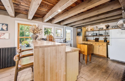 Welcome to your Hudson getaway! This bright, open-plan retreat features a cozy living area with a double-sided fireplace, a serene bedroom overlooking the garden, and a loft with a comfy sleeper sofa. The spa-like bathroom offers a rain shower, clawfoot tub, and heated towel rack. Enjoy morning coffee on the sunny deck or cook up something special in the fully equipped kitchen. And yes—it’s just steps from shops, restaurants, parks, and the Amtrak station!