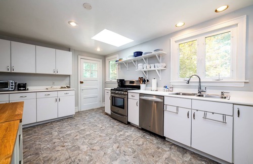 Dunegrass Cottage is reminiscent of a beach cottage you might find in Nantucket without the long drive. This 1930's cottage has been beautifully renovated with hardwood floors throughout and features an updated kitchen and three new baths. With seven bedrooms, two living rooms, two enormous decks and a large screened-in porch, the house is perfect for large groups or family reunions. The property is situated on a large lot with a yard, a firepit, and an outdoor shower. The private Gowdy Shores beach is just a short walk through the wooded path. Close to downtown Union Pier as well.