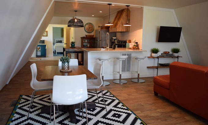 We would love to have you stay in our charming and unique A-Frame home located in a quiet neighborhood.
