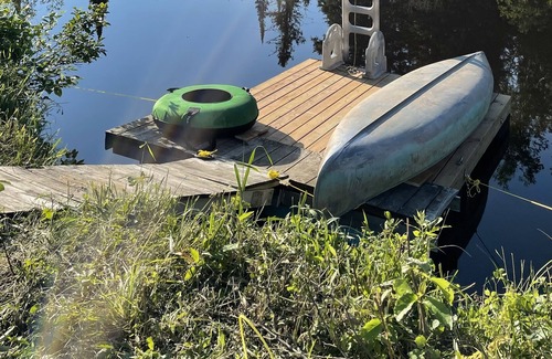 Just 10 meters beyond the camper is 2 km of riverfront and shared swimming raft, where you can swim, fish, splash, float, canoe, or just chill on loungers and watch the river flow. Walk, hike, ride an AATV. snowshoe, or cross-country ski on 3 km of woodland trails. Enjoy snow-tubing, and bring your snowmobile, too. Love to fish? Catch brook trout from the creek. Experience the best of nature amid rolling hills and the winding river.