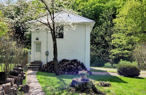 Unique Carriage House on beautiful Litz Mansion grounds, Tazewell VA. Tranquil studio getaway with queen bed, kitchenette, seating area, dining table. Luxurious full bath with steam shower. Stunning exposed brick walls, whitewashed cathedral ceiling create charming atmosphere. Perfect escape from everyday life. Private retreat on historic estate grounds. Walk to Main Street restaurants, Back of the Dragon Brewery. Cozy sanctuary you won't want to leave.