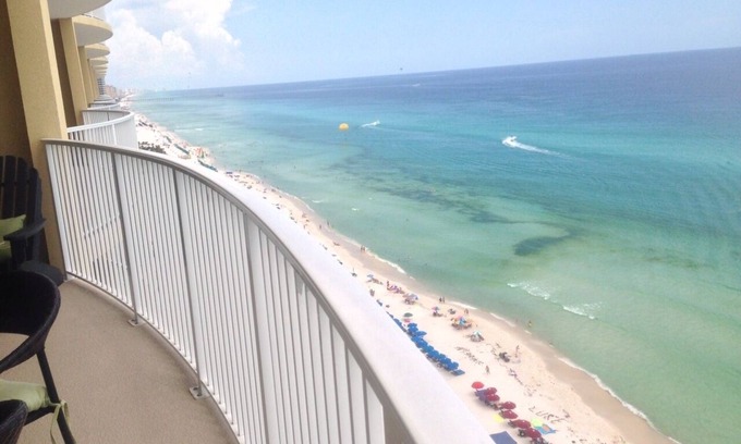 At the west end of panama city beach, close to pier park with beautiful views up and down the beach from the largest balconies on the beach. A two bedroom condo with king-size beds in both rooms, plus a sofa-bed. A beautifully decorated condo that is a cut above the typical condo. Wireless internet and cable TV including HBO, DVD player and games for the rare afternoons that it rains. New this year is a big screen smart TV with netflix and amazon TV, and a new big screen TV in the Master Bedroom