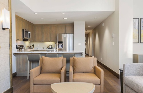 Privately owned luxe residential suite 2-bdrm/2 bath located inside the Name Brand Riverfront Resort and Spa (not allowed to use Brand name Resort in advertising). Crack your windows and hear the water from the Eagle River from this unique wrap around premium end unit suite in the east wing of the Resort and Spa.