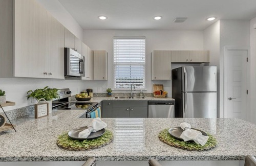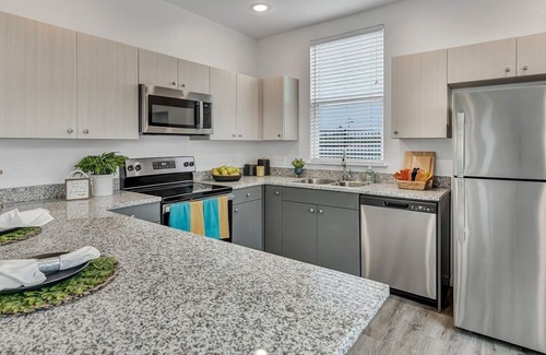 The kitchen is adorned with granite countertops and stainless-steel appliances, everything is top of the line.