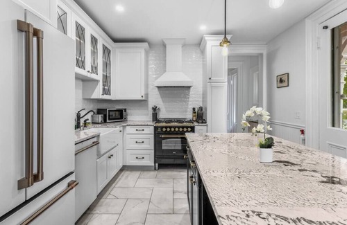 Prepare to be treated and pampered in the updated kitchen of Strawberry Castle, where custom appliances and finishings create a culinary sanctuary perfect for the colder seasons. From the sleek custom appliances to the gleaming countertops, every luxurious detail has been carefully curated for your utmost culinary pleasure amid the cozy atmosphere of autumn and winter. In this modern kitchen, you'll feel truly spoiled, ensuring that every winter meal becomes a heartwarming and memorable experience to savor and cherish.