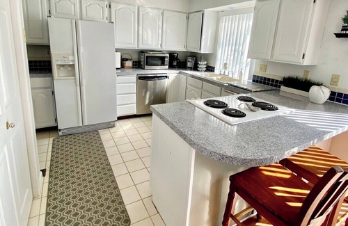 The whole family will have a pleasant stay in this unique home! Our 4 bedrooms will comfortably sleep 9 of your closest family or friends. This place is great for kids, as we provide all the necessities. From a highchair, to a pack-n-play, to a play set in the back. The back yard is fenced for all the outdoor fun! If this isn't enough, there are also 2 parks within walking distance. You have access to a two car garage.
