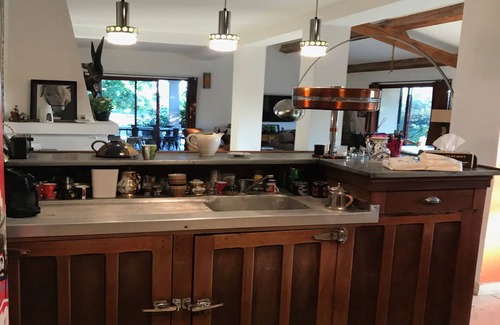 This unique house, nestled in the hills with no noise or disturbance, provides a serene retreat. With its large windows, you'll feel like you're among the trees, in total communion with nature. Beautiful walks starting from the house will help you forget your worries; you can even hike up to the small village of Montfuron via the hamlet of Les Criés in just 1.5 hours. It's in this village, which is also accessible by road, that you'll find the excellent restaurant "Chez Eric."