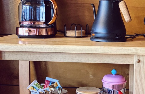 • Compact but fully stocked kitchen: cookware, utensils, spices & staples