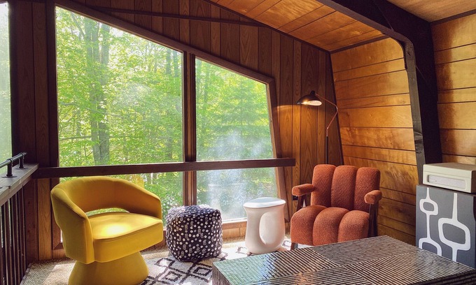 Unique Insta-Worthy Poconos Chalet - Fireplace/Pool/Beach/Lake/Fire Pit is located in Hamlin. Unique Insta-Worthy Poconos Chalet - Fireplace/Pool/Beach/Lake/Fire Pit provides accommodation, featuring Parking, Security/Safety, Entertainment, among other amenities. This Ski Chalet features Parking, Security/Safety, Entertainment, to make your stay a comfortable one.