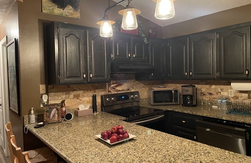 Living room and bathrooms remodeled in 2022. Hand-carved wood accents and themed decorations throughout. Attached carport convenient for winter months. Reliable cell service and WiFi with 5G high-speed internet and smart TV. Kitchen is fully stocked with utensils and dinnerware. Wood stacked for fireplace. Linens and towels are provided.