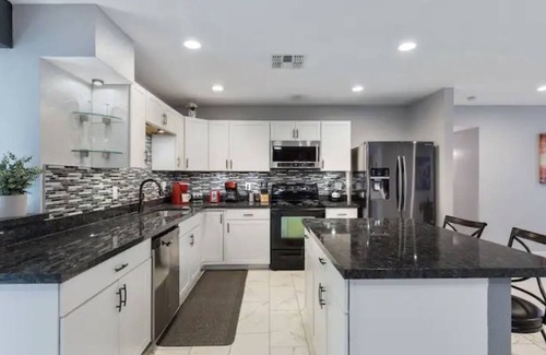 You will feel right at home in this fun, 4 bedroom property with fantastic amenities! This place has been designed for an AMAZING guest experience! You'll absolutely love the backyard with the private pool and hot tub. You'll also love the putting green and numerous TVs set up both inside and outside so you'll never miss a game. This home is conveniently located near grocery stores and numerous restaurants all within a mile. There are also golf courses, hiking trials, the Airport, and the Cardinals Stadium all within 25 min . While this area is not Scottsdale, our neighborhood is safe and friendly.