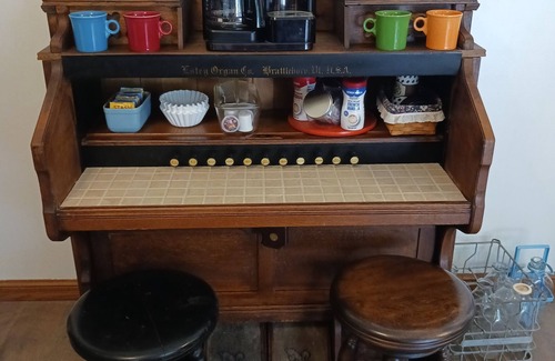 Throughout the house you will find vintage items from our 1880's organ (repurposed into a coffee bar) to our 1970's oil rain lamp.