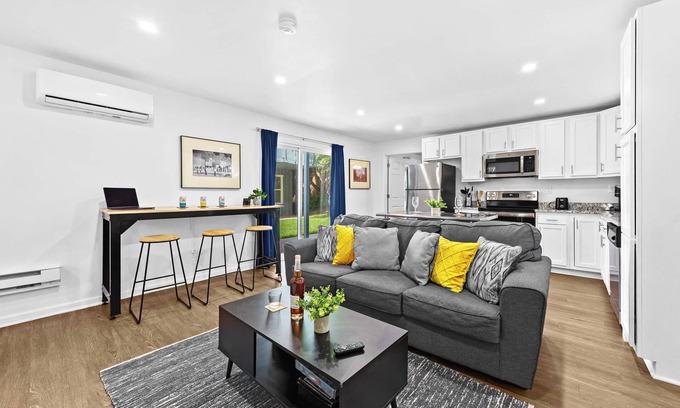 Nestled in Louisville’s Phoenix Hill, this eco‑friendly unit stay blends sustainability and style. Ideal for remote workers with fast Wi‑Fi, smart lock entry, and a cozy work nook. Enjoy a private covered patio and spacious living area. Inside, relax in the queen bedroom, full bath, and fully equipped kitchen with stainless appliances. Steps to distilleries, breweries, cafés, and galleries—this unique retreat offers comfort, convenience, and authentic local flavor