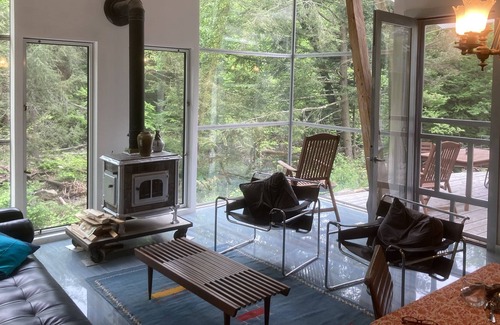 Take it easy at this cool tranquil getaway while you hear only the water flow of wrap around 4 season river right off porch. Close to scenic hiking, skiing, river tubing, and great restaurant meals above and along "Rapid Water" , The Algonquin Nation word -Shandaken.