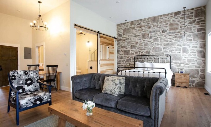 Unique Rustic Suite with Jacuzzi Tub, Kitchen, Fireplace, and Living Room | Apartment in Millersburg