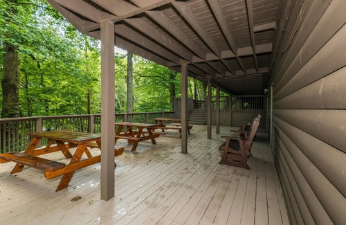 This unique 3 story cabin has cathedral ceilings, gas fire cooking range, wine cooler, pool table, hot tub, and 3 levels of outside decking with picnic tables, rocking chairs, and lounge chairs to accommodate everyone’s comfort.