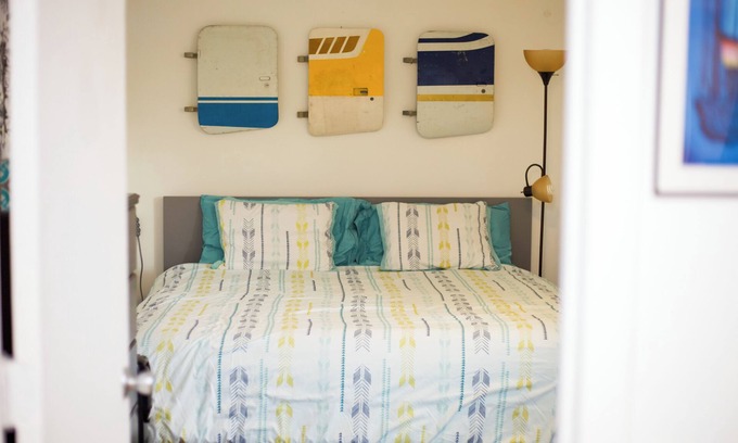 Ideal for 1-2 people, though we can accommodate larger groups short-term. The bedroom has a king-sized bed that comfortably sleeps 2. We can provide an air mattress and extra bedding on request for additional guests.