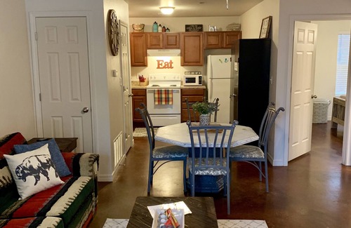 This unique space is great for anybody especially family traveling to any college sporting event or activity. This space has plenty of room for activities or a simple relaxing weekend. Included are 2 spacious bedrooms. A living room which is equipped with a sofa bed creating additional bedding for more guests. I have added a kitchen table for any plans of cooking or community. Truly I could talk about this all day, but in all I believe I have added many touches that make the Buffalo Point Hideaway feel like home. Enjoy!