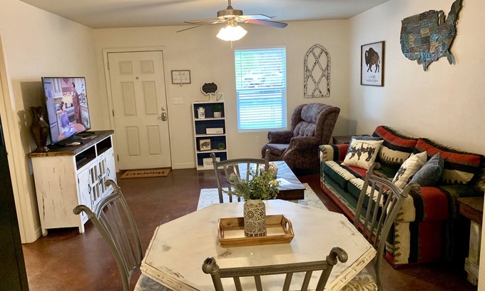 The Buffalo Point Hideaway is a unique space with a farmhouse feel. You are practically on college campus, walking to any sporting event is no problem. Not far from downtown square, and a 10 minute drive to Palo Duro Canyon. Palo Duro Canyon offers hiking, zip lining, horseback riding, the play Texas, and a multitude of other activities.