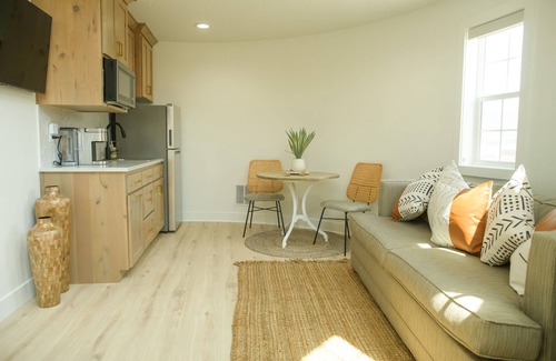 Come stay in a grain bin in Lava Hot Springs Idaho! This unique Silo House is a round structure transformed into a cozy cabin. When entering The Southern Charm you will be greeted with a cozy living room with a pull-out queen sleeper sofa and kitchenette. There is a 3/4 bathroom with a large walk in shower, vanity, and toilet. The loft bedroom upstairs will greet you with amazing mountainous views. You will love the view from the upstairs king bed whether it be watching the 75in smart television or looking out the 5 panoramic windows. We are only 2 miles from the famous hot pools of Lava Hot Springs! There is one ring doorbell next to the front door for guest security. For more on The Bins of Lava, please follow us on social media @silosolutionsidaho