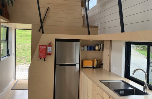 The tiny house retreat has its own private entrance and deck. It is self contained and close to all amenities, just a short walk to the Parua Bay Village.