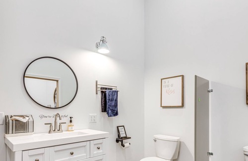 Bathroom: There is a spacious bathroom on site with a stand-up shower and heated toilet seats! Enjoy lots of fun hotel-style toiletries during your stay.