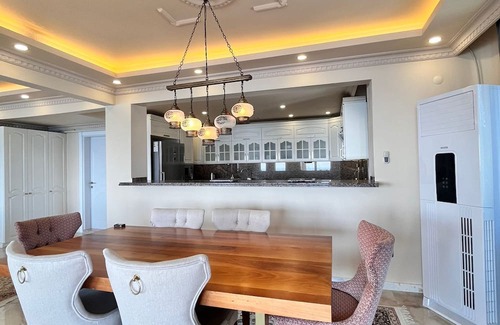 Settlement in the house 6 bedrooms 1 living room 4 bathrooms 1 Turkish bath We have 1 open and close automatic controlled terrace 2 kitchen residences 3-storey 650m2 usable area There is wifi service in each room TV 65 inc smart and each room lounge is included.