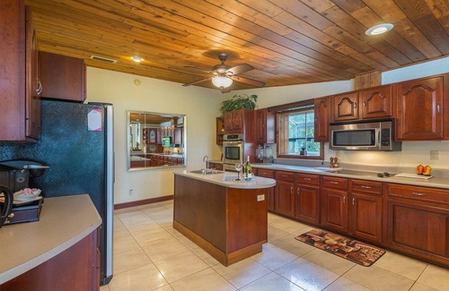 This house is nestled in a wooded 3 Acre lot directly in front of Safety Harbor gulf. The home has two floors. Upstairs the massive Master Bedroom Suite has its own 2 private balconies facing the water as well as a spiral staircase leading to the look out point. The Master Bedroom also boasts its own kitchenette and sitting area. On the main floor the open plan all looks at the panoramic view of the Bay. The elegant nautical theme plays throughout the house. The Turtle Bedroom has 2 twin beds and the Sandpiper Bedroom has a Queen Bed. They hug an elegant Shell Bathroom that is also used as the pool bath. The Captains Quarters includes a library, a bathroom with a shower, a private Ship Ahoy Living Room and a queen size bedroom with its own private entrance. Tile and wood throughout the house gives a clean and spacious feel. The kitchen is fully stocked with pots and pans, dishes and utensils. The property is 10 min from the infamous Safety Harbor Spa where celebrities that perform in Ruth Eckered Hall stay. Its also only 15 min away from the newly remodeled and expanded Tampa International Airport and the International Plaza. Clearwater Beach (30 min), Honeymoon Island (15 min) and hundreds of excellent restaurants, shops, and movie theaters to choose from. Orlando is only 1 and a half hours away to enjoy all of their attractions.
