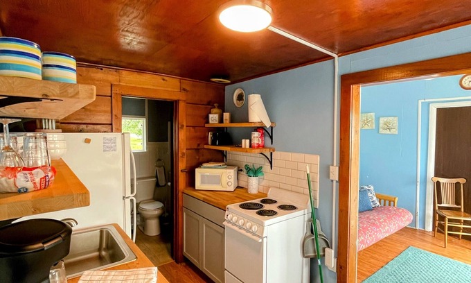 Unit 2 is our largest one bedroom cabin, one bathroom, kitchen, dining and living room unit right on the beach. Part of a six unit resort with individual deck, grill, picnic table and chairs. Resort shared fire pit, kayaks and beach. Beautiful sunrise views and great family memories await you Here On Lake Huron!
