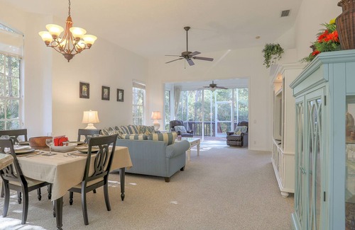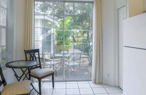 This airy, light, open easy flowing home is perfect for relaxing while you are in Florida. Two bedroom, two bathswith ample lighting in each room will bring the outdoors in to you. The kitchen is open and overlooks the dining room and living area. It comes fully stocked with all items you could need while on vacation. The master bedroom features a beautiful king size bed with private bathroom. The guest bedroom showcases a queen size bed with easy access to the guest bathroom. The gorgeous den area is surrounded by large open windows with views of the fully screened in patio area.