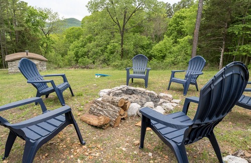 Take an early morning stroll and enjoy the beautiful views of Arkansas hills while you immerse yourself in nature. Enjoy the extras that Whistling Pines supplies including outdoor seating, high chair, pack n play, and a fully stocked kitchen. You will just need to pack your clothes and meals. Retreat to the outdoor deck in the evening, flip on the porch lights, or head on down to the fire pit and share camp fire stories while enjoying smores!