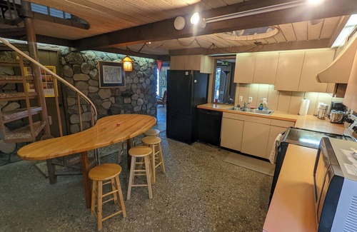 With 3 cozy bedrooms two nestled up the spiral staircase it’s the perfect summer hideout for families, couples, or a few friends looking to chill out and reconnect. The beach here is bigger than most in the area, giving you room to spread out, soak up the sun, and take in the lake breeze. Surrounded by woods, it’s quiet, peaceful, and about as private as it gets.