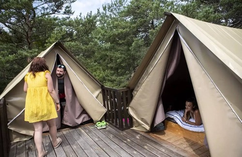 Unusual accommodation in canvas and wood for a Glamping stay and Pod Cosy chalets, all made of wood, landed at Camping Les Hauts de Rosans to offer you an unforgettable holiday.