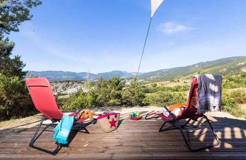 Unusual accommodation in canvas and wood for a Glamping stay and Pod Cosy chalets, all made of wood, landed at Camping Les Hauts de Rosans to offer you an unforgettable holiday.