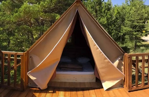 Accommodation: GeneralAreasTotal area (m2) : 44Garden area (m2) : 800SituationNeighbourhoodcalmViewmountainExposureSouthFurther informationSmoking accommodation: noDisabled access: noAccommodation GlampingOld ageYear of rental : 2022AnimalsAnimals: accepted under conditionswith supplementcompulsory vaccination bookletkept on a leashDogmore than 1 yearDog of 1st class prohibitedDog of 2nd category prohibitedRooms & BeddingsSeparate rooms: 3Separate roomsStrandsBed 1 person : 2Dimensions: 80 x 190Separate roomsStrandsBed 2 persons : 1Dimensions: 140 x 200Separate roomsStrandsBed 1 person : 2Dimensions: 80 x 190BeddingSheets: not provided: Sheets: providedsupplementPillows: providedCovers: providedMattress protectorsKitchenKitchen : 1equippeddishes/covers adapted to the number of personsKitchen equipmentCold waterHot waterCooking plates : 2 lights : 1Microwave : 1Sink: 1Refrigerator / Freezer : 1Dishwasher : 1Coffee maker : 1Brand : NespressoseparatedHealth facilitiesBathroom(s) : 1ShowerWashbasinHair dryerWC : 1in the bathroomBath linen: not provided: Bath linen: providedsupplementInterior equipmentMultimedia equipmentWi-fifreeElectrical equipmentEuropean takeThermal installationNo air conditioning External equipmentGarden furnitureTerrace : 2coveredSemi-coveredNot coveredPicnic tablePlancha: not provided: Plancha: providedChilean TransatBalcony: 1Not coveredSolarium