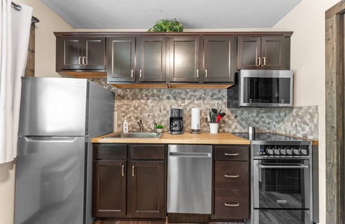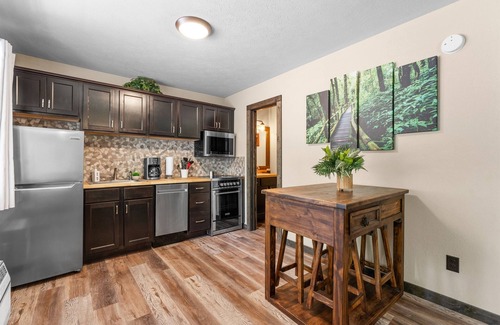 Welcome to Nature’s Haven! This recently remodeled condo is perfect for your Branson getaway! Relax with the whole family at this peaceful resort. Nature’s Haven has a king murphy bed and sofa bed in living room.The private room has a king bed. There is a kitchenette and an island with stools. As you enter the condo, you will immediately see why this is place to be with nature and a have a peaceful getaway! The resort is wooded and peaceful and the condo has been decorated to melt the stress away. For those looking for some activities, there is an arcade system with 100+ games, outdoor games! Our resort offers a variety of amenities to make your stay enjoyable. Take a dip in the pool, relax in the hot tub, or make s’mores by the resort fire pit. The pool and hot tub are open seasonally. If you're looking for things to do, Branson has plenty to offer. Silver Dollar City is just a mile away and offers thrilling rides, live shows, and delicious food. The Branson Landing is a popular shopping and dining destination, while the Titanic Museum and Ripley's Believe It or Not offer unique and interesting exhibits. No matter what brings you to Branson, our condo provides a comfortable and convenient home base for your vacation. Book your stay today and start making memories!
