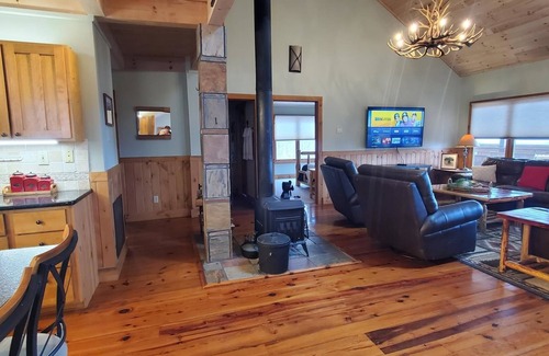 Enjoy gorgeous long range mountain views from El Cabitan, a spacious log home with four sleeping areas and four baths, conveniently located to Boone & West Jefferson.